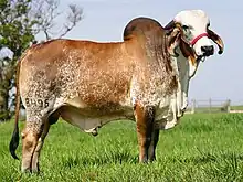 A giba - cupim - é bem saliente nas fêmeas e mais avantajada nos machos. As orelhas são pendulares, iguais a uma "folha seca", formando uma dobra característica na extremidade, voltada para dentro - que recebe o nome de gavião.[2]