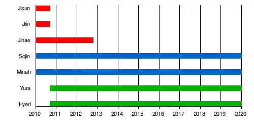 ![]() Girl's Day Da esquerda para a direita: Sojin, Minah, Hyeri e Yura | |
