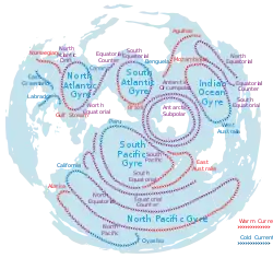 - giros monsônicos índicos (duas correntes com rotação contrária no norte do Oceano Índico);[3]