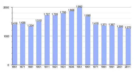 | Variação demográfica do município entre 1861 e 2011[3] |