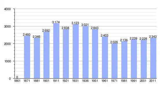 | Variação demográfica do município entre 1861 e 2011[3] |