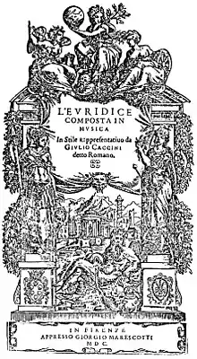 Caccini compôs três óperas – Euridice (1600), Il rapimento di Cefalo (1600) e Euridice (1602), no entanto, a primeira continha música que não era da sua autoria (eram principalmente de Peri). Adicionou ainda a música para um intermédio (Io che dal ciel cader farei la luna) em 1589; e mais duas colecções de canções e madrigais, também intituladas de Le nuove musiche, em 1602 e 1614.