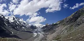 O Pasterze é acessível pela caminho do Grossglockner e por funicular.
