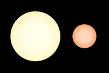 Gliese 1 (direita) comparado ao Sol (esquerda)