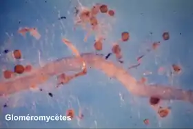 Os membros da classe Glomeromycetes são exclusivamente organismos de que se apenas se conhecem formas microscópicas. Produzem grandes esporos subterrâneos, que medem 0,1 a 0,4 mm de diâmetro, que quando germinam desenvolvem uma hifa, medindo apenas 0,001 mm mm de diâmetro, que é atraída pelos açúcares libertados pelas raízes das plantas. Uma vez estabelecido o encontro, o fungo substitui um dos pelos radiculares e funde-se com os tecidos da raiz para formar endomicorrizas arbusculares. Isso permite que o fungo forneça água e sais minerais para a planta e a planta forneça em troca açúcares e ácidos gordos.[4]