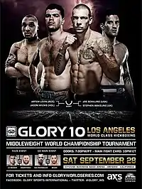 O evento contou com o Torneio de Médios do Glory.[1] Duas lutas pelo torneio aconteceram, com a terceira sendo reserva. Os vencedores das lutas semifinais, avançaram a final no evento principal. O evento também contou com outras lutas não válidas pelo torneio.