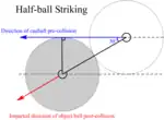 A direção que tomam tanto a bola branca como as sucessivas bolas a as que toca. Pode ser modificada se é golpeada com o taco em um lugar diferente de seu centro (desde o ponto de vista do tirador). Modificar de este modo o ponto de contacto induz uma rotação na bola, que afeta principalmente à direção que toma uma vez que toca outra bola ou uma tabela, e do mesmo modo a as bolas golpeadas pela primeira, adquirindo o efeito nesse caso por transferência e roçamento.