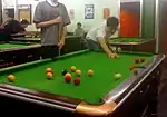 Modalidade de bilhar praticada quase exclusivamente no Reino Unido e parecida ao Bola 8. Ao contrário desta, os dois grupos de 7 bolas são um de bolas vermelhas e outro amarelas (mais a bola 8). De facto, essas cores eram as das bolas quando nasceu o jogo, provavelmente em 1925, antes da distinção entre lisas e listadas.