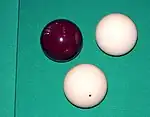Esfera de marfim para jogar ao bilhar, com um diâmetro entre 61 e 61,5 mm e peso entre 205 e 220 g. Segundo o jogo podem ser de diferente tamanho e cor.