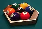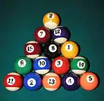 Modo em que se colocam as bolas para iniciar cada partida nos jogos de pool que utilizan 15 bolas objetivo (bola 8, blackball...). Estas colocam-se de forma triangular (seguras por um triângulo de madeira ou plástico que posteriormente se retira), com uma base de cinco bolas, um vértice apontado à tabela de pé e a bola negra (situada no centro da segunda fila segundo o ponto de vista do jogador com a vez) sobre o ponto de cabeça. Em outras versões é a bola que está no vértice do triângulo a que deve ficar sobre esse ponto.
