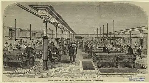 Também denominado bilhar americano. Costuma chamar-se pool, em oposição ao jogo de carambola, a todos os jogos de bilhar que consistem em embolsar bolas, e nos quais a mesa tem bolsas.