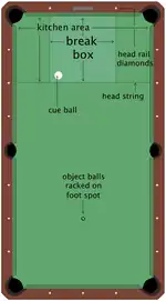 Nos jogos de pool realiza-se desde o ponto que o jogador eleja dentro da "cozinha". Embora haja tantas técnicas como jogadores, muitos jogadores escolhem uma posição para a bola branca próxima de uma das tabelas longas, golpeando a bola com efeito abaixo e dirigindo-a contra a bola do vértice do triângulo ou rack.