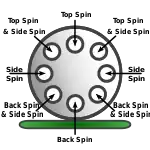 Se a bola branca é golpeada em um ponto à direita o à esquerda de seu eixo vertical (desde o ponto de vista do tirador) tomará uma rotação para um lado. Se é golpeada à direita de seu centro, girará (vista desde acima) no sentido contrário ao dos ponteiros do relógio, e ao contrario se é golpeada em seu lado esquerdo. Além de um ligeiro deslocamento diferente prévio (ver "reação de desvio", a bola golpeada, ao golpear outra bola o uma tabela, será ajudada pelo efeito a tomar a direção do mesmo depois do choque. As bolas golpeadas, por transferência e tal como fariam duas engrenagens, tomam o efeito contrário ao que traz a bola branca.
