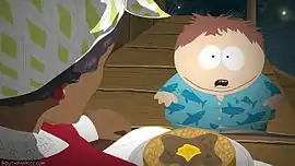 - Enredo e Direção: Trey Parker (1 de outubro de 2014). «Gluten Free Ebola». South Park. Temporada 18. Episódio 2. No minuto 22. Comedy Central