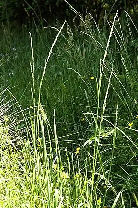 Os seus nomes comuns são azevém-baboso ou glicéria-inclinada.[2]