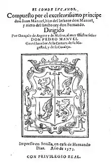 - Dom Juan Manuel, El conde Lucanor, Gonzalo Argote de Molina (ed. lit.), Sevilla, Hernando Díaz, 1575.