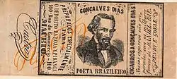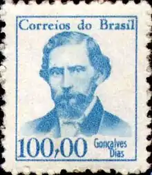 Antônio Gonçalves Dias (Aldeias Altas, 10 de agosto de 1823 – Guimarães, 3 de novembro de 1864) foi um poeta, advogado, jornalista, etnógrafo e teatrólogo brasileiro.[2] Um grande expoente do romantismo brasileiro e da tradição literária conhecida como "indianismo", é famoso por ter escrito o poema "Canção do Exílio", o curto poema épico I-Juca-Pirama e muitos outros poemas nacionalistas e patrióticos, além de seu segundo mais conhecido poema chamado: Canções de Exílio que viriam a dar-lhe o título de poeta nacional do Brasil. Foi um ávido pesquisador das línguas indígenas e do folclore brasileiro.