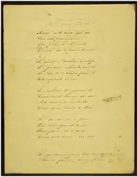 Foi aí, em Lisboa, num jardim público, que certa vez se defrontaram o poeta e a sua amada, ambos abatidos pela dor e pela desilusão de suas vidas, ele cruelmente arrependido de não ter ousado tudo, de ter renunciado àquela que com uma só palavra sua se lhe entregaria para sempre. Desvairado pelo encontro, que lhe reabrira as feridas e agora de modo irreparável, compôs de um jato as estrofes de 'Ainda uma vez — adeus!', as quais, uma vez conhecidas da sua inspiradora, foram por esta copiadas com o seu próprio sangue.