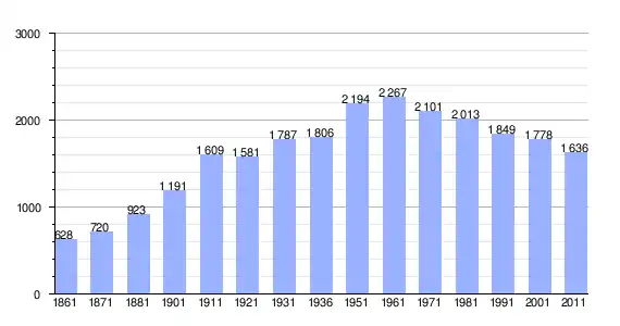 | Variação demográfica do município entre 1861 e 2011[3] |