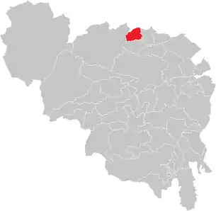 | Localização de Grünbach am Schneeberg no distrito de Neunkirchen | |