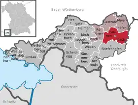 | Localização de Grünenbach no distrito de Lindau | |
