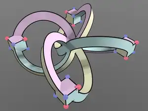 ![]() Toro simétrico incorporado O toro é formado, topologicamente, colando-se arestas opostas de um hexágono regular com o outro. |