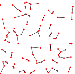 Um grafo do vizinho mais próximo de 100 pontos no plano euclideano.