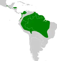Ocorre na Amazônia brasileira, Piauí e, em direção sul, até o Paraná. Encontrado também do México ao Equador e Peru.