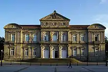 O Palácio da Deputação de Pontevedra, situado no meio da Grande Via de Montero Ríos, pertence ao estilo eclético com elementos e conceitos inspirados na arquitectura francesa. É construído em pedra, tem uma planta quadrada e dois andares. A fachada está simetricamente organizada, com um corpo central e dois corpos laterais ligeiramente avançados, com pedras cortadas em relevo. Uma grande escadaria conduz à entrada principal, que é inspirada por um arco triunfal, com arcos de volta perfeita emoldurados por colunas caneladas com capitéis jónicos.[13]