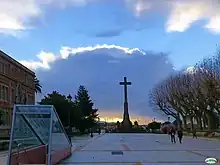 Em Agosto de 1941, a Câmara Municipal de Pontevedra cedeu um terreno no final da Grande Via ao governo franquista para a construção de um monumento à memória dos soldados que morreram pela sua pátria. Foi construída uma grande cruz, ao estilo das que foram erguidas ao mesmo tempo em toda a Espanha.[5]