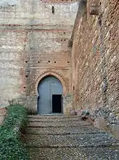 Uma área tão ampla tinha forçosamente que dispôr de um grande número de portas de acesso. Seco de Lucena regista 16; quatro delas ligavam com a Al Casba, como já foi referido; a Bid Almedina, hoje conhecida como Porta de Armas, ligava com a Alhambra; Bib Handac, Bib Axauro e Bib al-Fajjarin ligavam com os bairros orientais; as restantes oito davam acesso ao exterior: Bib Ateibin", la más oriental, "Bib Addabragin", Bib al-Faras, Bib al-Mazdaa, Bib Riha, Bib Arbaatayun, Bib al-Mezra e, a mais ocidental, Bib Elbeira, que ainda existe com o nome de Porta Elvira, por ser a principal saída na direção da antiga capital da cora califal e que, por ser construída como uma porta dupla, tanto servia como acesso ao exterior como para aceder aos bairros do norte da cidade.