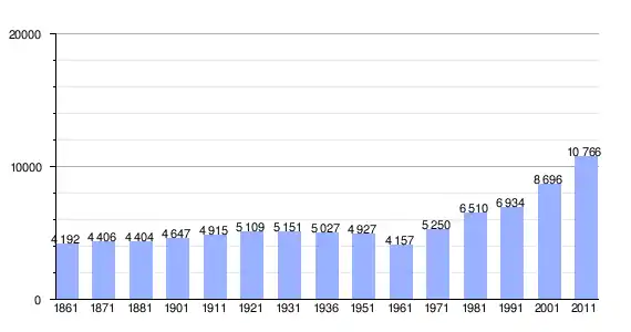 | Variação demográfica do município entre 1861 e 2011[3] |