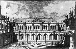A execução dos trabalhos ficou a cargo de arquitectos italianos – tal como aconteceu com as recém-construídas muralhas, torres e vários outros edifícios actualmente preservados no Kremlin; merece especial destaque a construção do palácio familiar do grão-duque de então, Ivã III o Grande, executada pelo arquitecto milanês Aloisio da Milano (naquela época, conhecido na Rússia como Alewis Frjasin[4]). A construção começou em 1499 e foi concluída em 1508, ou seja, três anos depois da morte de Ivã III. Ao contrário do que sucedeu com os anteriores edifícios de madeira, o novo palácio resistiu por mais de 200 anos. Durante os séculos XVI e XVII foi reconstruído e ampliado várias vezes, sendo concluído com o alargamento de 1636, o qual subsiste até hoje como o Palácio dos Terems.