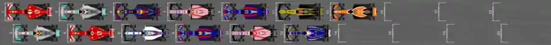 ↑2 - Daniel Ricciardo (Red Bull) perdeu cinco posições no grid por conta de uma troca não programada da caixa de câmbio.[11]
