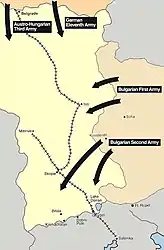| Parte de Segunda Campanha da Sérvia e do Teatro dos Bálcãs na Primeira Guerra Mundial | |