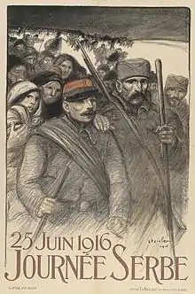 Durante 1916, mais de 110.000 soldados sérvios foram transferidos para Salônica, onde se juntaram ao exército Aliado depois que a Grécia entrou na guerra; cerca de seis divisões de infantaria sérvias e uma divisão de cavalaria, com nomes de regiões e rios da sua terra natal, acabariam por voltar a servir, desempenhando um papel fundamental no avanço da Frente Macedônia em Setembro de 1917, e na libertação da sua terra natal um ano depois. [2]