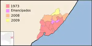 | Município | Legislação | Área (km²)[9] | População (2021)[2] |
