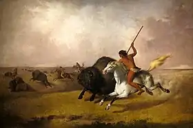 Na década de 1840, os nativos das planícies estavam matando o bisão em uma taxa maior. Eles mataram cerca de 500.000 bisões para subsistência, além de 100.000 para o comércio com os mercadores americanos do leste. Ao mesmo tempo, o desmatamento ao norte e leste combinou-se com o crescimento do mercado de gado ao sul, colocando uma pressão ainda maior sobre o bisão.[12] Finalmente, os caçadores comerciais na década de 1870 caçaram o bisão quase até a extinção. Entre 1872 e 1874, os caçadores de peles mataram mais de quatro milhões de bisões, enquanto os nativos das planícies mataram mais de um milhão.
