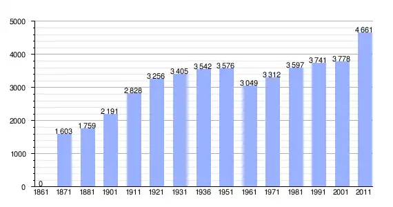 | Variação demográfica do município entre 1861 e 2011[3] |