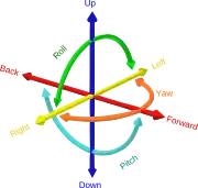 Os graus de liberdade do movimento existe o 6DOF, o cálculo sobre seis graus de movimento de um corpo rígido no espaço tridimensional.[6]