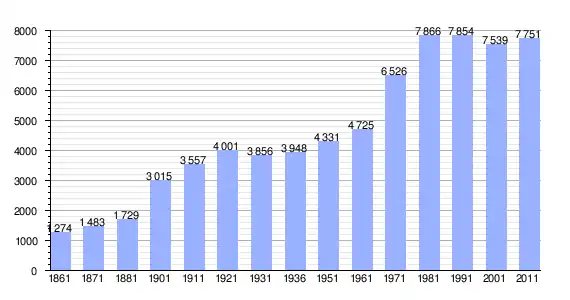 | Variação demográfica do município entre 1861 e 2011[3] |