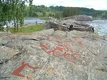 O motivo mais frequente é o alce, acompanhado em menor escala pelo salmão, pelo cão, pelo Homem, tipicamente dos caçadores e recoletores do Norte da Suécia. Igualmente, existem figuras relacionadas com a cultura agrária do Sul da Suécia. As gravuras estão datadas entre 4500 e 1 800 a.C.[3][4][5][6]