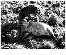 1983, sul do Brasil: Griffon barbudo com uma capivara abatida à margem do rio.