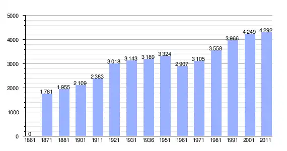 | Variação demográfica do município entre 1861 e 2011[3] |