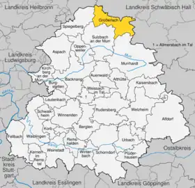 | Localização de Großerlach no distrito de Rems-Murr | |