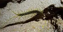 Ali, em março de 2012, os pesquisadores "Maria Elina Bichuette e Jonas Gallão encontraram pequenas centopeias (lacraias)" pela primeira vez e, a partir de então, novas pesquisas foram realizadas onde Bichuette e o experto Amazonas Chagas-Jr identificaram nova espécie troglóbia que foi batizada de Scolopocryptops troglocaudatus.[2]