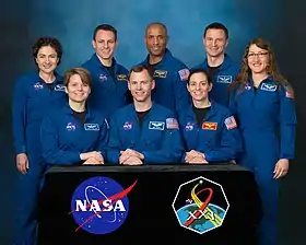 Nicole V. A. Mann | 27 de junho de 1977 | Nascida em Petaluma, Califórnia, formou-se em 1999 com um bacharelato em engenharia mecânica pela Academia Naval dos Estados Unidos e entrou no Corpo de Fuzileiros Navais. Conquistou um mestrado em engenharia mecânica pela Universidade Stanford em 2001. Fez viagens de serviço durante a Guerra do Iraque e Guerra do Afeganistão. Formou-se na Escola de Pilotos de Teste Navais. Está designada como parte da tripulação do Boeing Crewed Flight Test, o primeiro voo tripulado do Boeing CST-100 Starliner, previsto para 2021. | [7] |