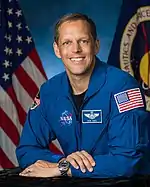 Kayla J. Barron | 19 de setembro de 1987 | Nascida em Pocatello, Idaho, formou-se em 2010 com um bacharelato em engenharia de sistemas pela Academia Naval dos Estados Unidos e entrou na Marinha. Conquistou um mestrado em engenharia nuclear pela Universidade de Cambridge em 2011. Serviu como oficial de submarino e depois ajudante do superintendente da Academia Naval. | [5] |
