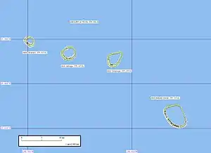 - Vahanga, tem uma forma circular com 5 km de diâmetro.