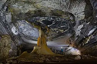 - é formado por uma galeria de 120 metros de comprido, tendo ainda um salão de 30 metros de largura, com uma coluna central, solo arenoso e blocos de rocha estáveis.